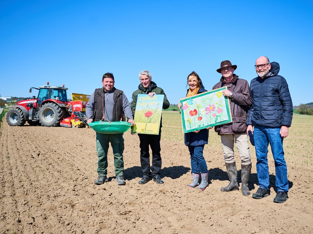 Der Start des Projekts „Blühstreifen in Schönaich“, gefördert durch die Anton & Petra Ehrmann-Stiftung, erfolgte Anfang April 2025. Auf Initiative des Schönaicher Heimatvereins legten sieben Landwirte 2,5 ha Blühstreifen an Hauptwirtschaftswegen mit einer Gesamtlänge von drei Kilometer rund um Schönaich an. Trotz Trockenheit ist die Blühmischung gut aufgegangen, mit Arten wie Buchweizen, Ringelblume, Kornblume und seltenen Ackerwildkräutern. Viele Schmetterlinge und Wildbienen wurden beobachtet.